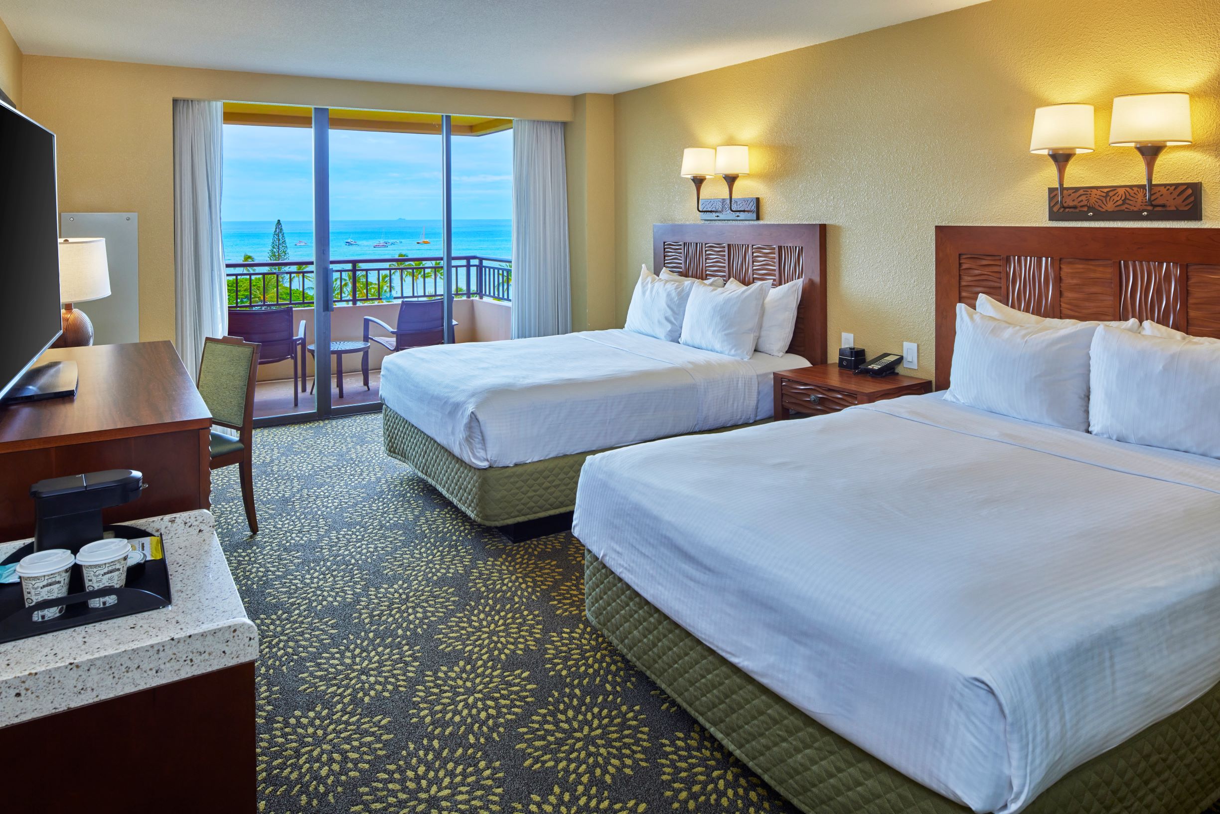 This is the ultimate view you crave when you visit Hawaii. A classic, expansive outlook of the beautiful, blue ocean framed with sandy shores of Waikiki Beach and bright skies overhead. It’s pretty much as close as you can get to the water without getting wet. It’s a bucket-list kind of indulgence, and comes at a surprisingly affordable rate.