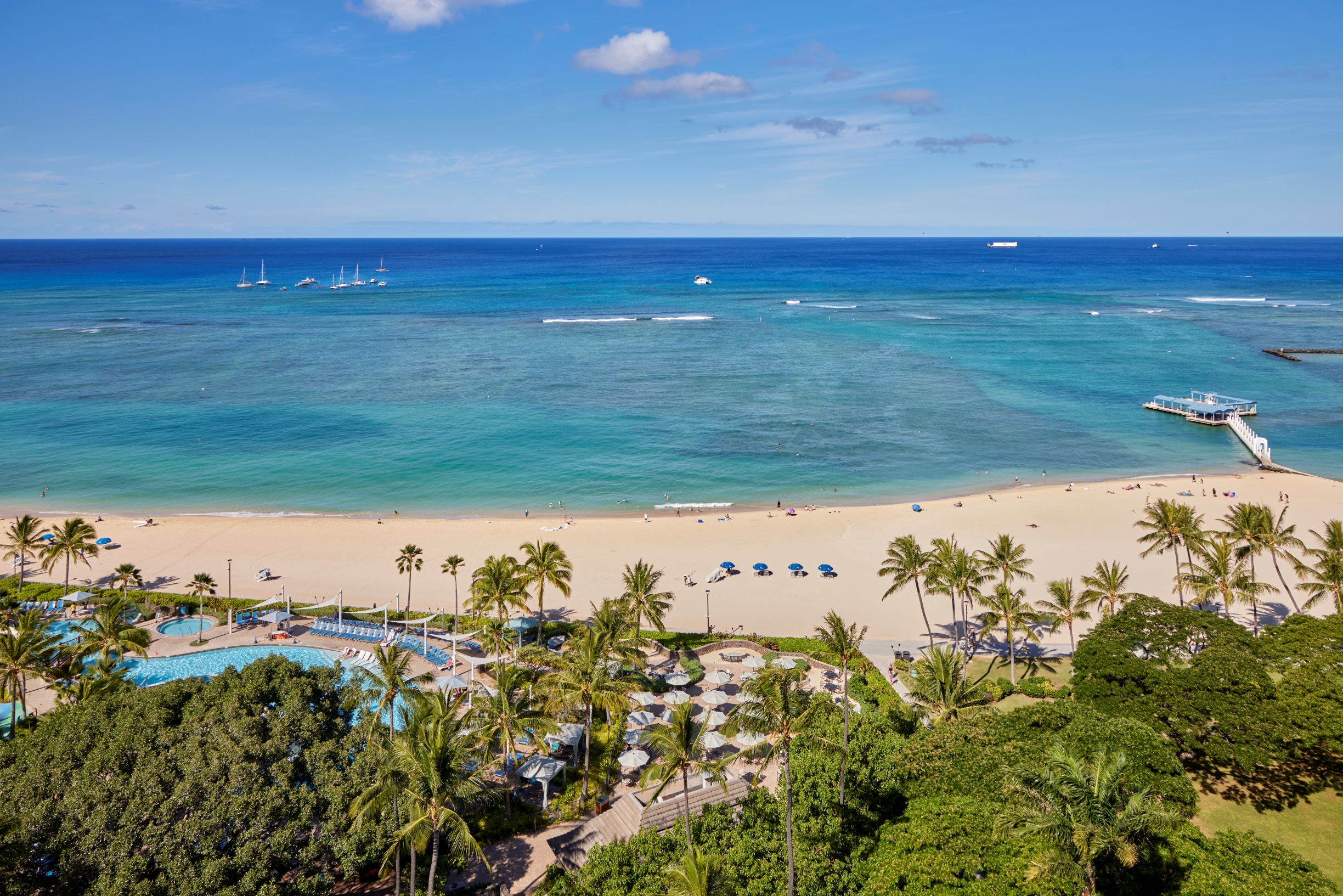 This is the ultimate view you crave when you visit Hawaii. A classic, expansive outlook of the beautiful, blue ocean framed with sandy shores of Waikiki Beach and bright skies overhead. It’s pretty much as close as you can get to the water without getting wet. It’s a bucket-list kind of indulgence, and comes at a surprisingly affordable rate.